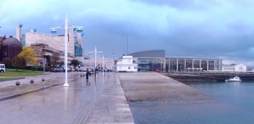 Vistas del CEAR y del Palacio de Festivales desde la zona de los pantalanes.